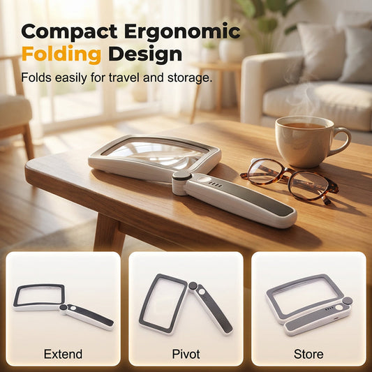 🔍 Сгъваема ръчна лупа със светлина за четене | 10x увеличение, LED осветление, сгъваем дизайн – идеална за хора с намалено зрение и възрастни 👵✨