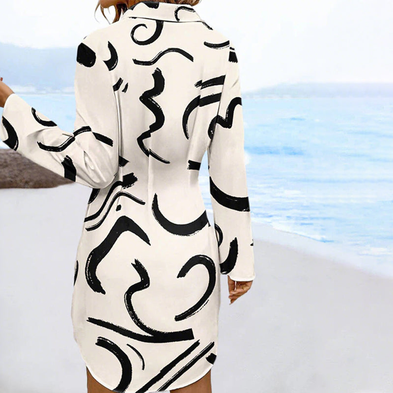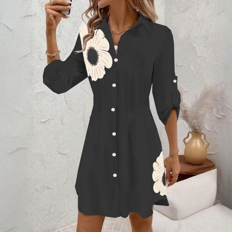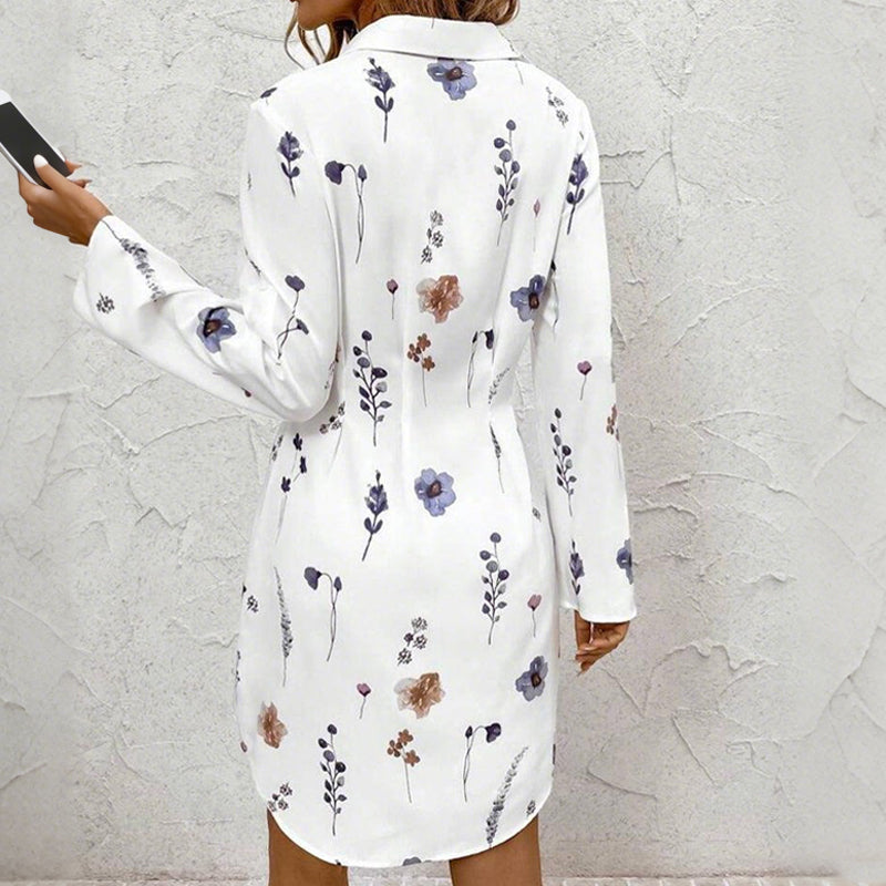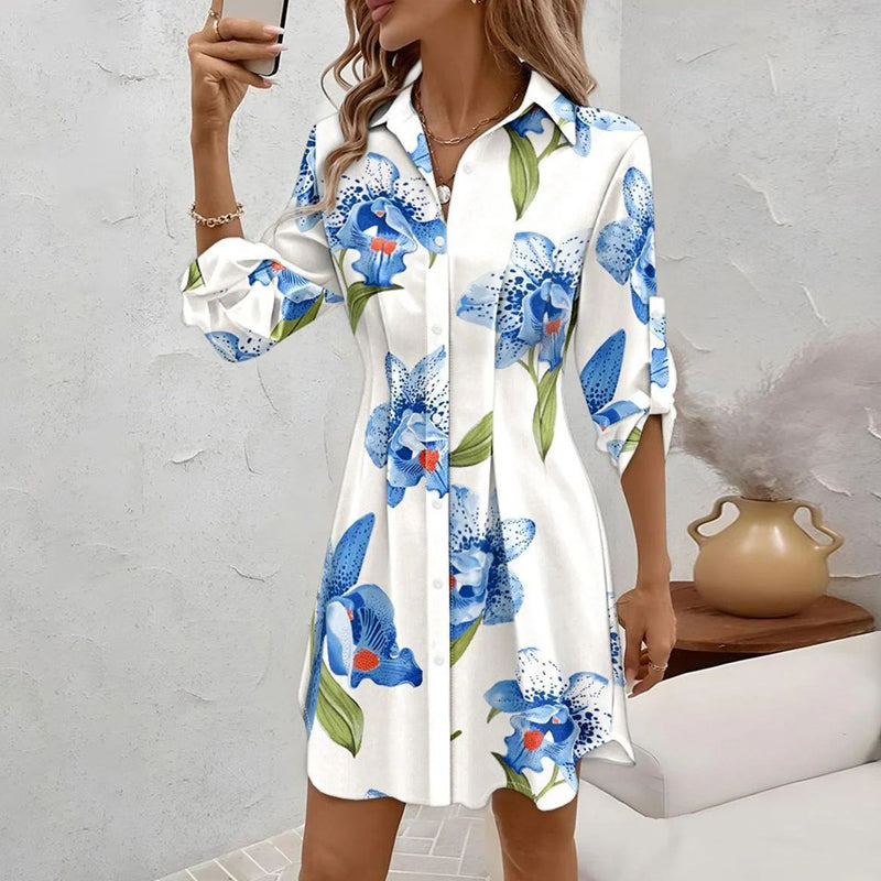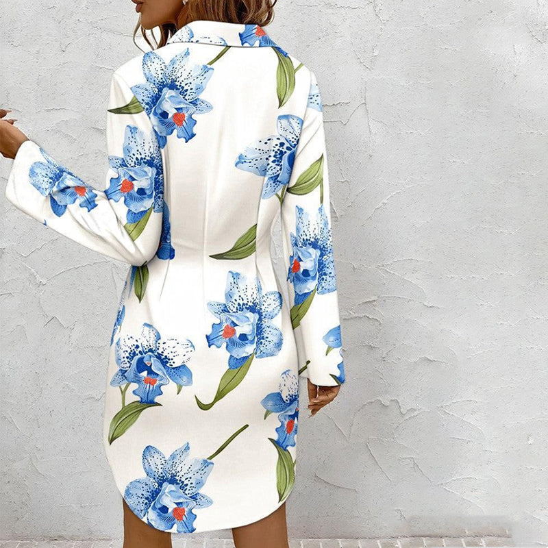 ЕЛЕГАНТЕН ДИЗАЙН НА ПЕЧАТКАТА: Роклята с риза е с деликатна флорална или линейна щампа, налична в множество цветови гами, които да отговарят на вашия стил. Изтънченият десен добавя нотка женственост, което я прави идеална както за ежедневни излизания, така и за полуофициални поводи.