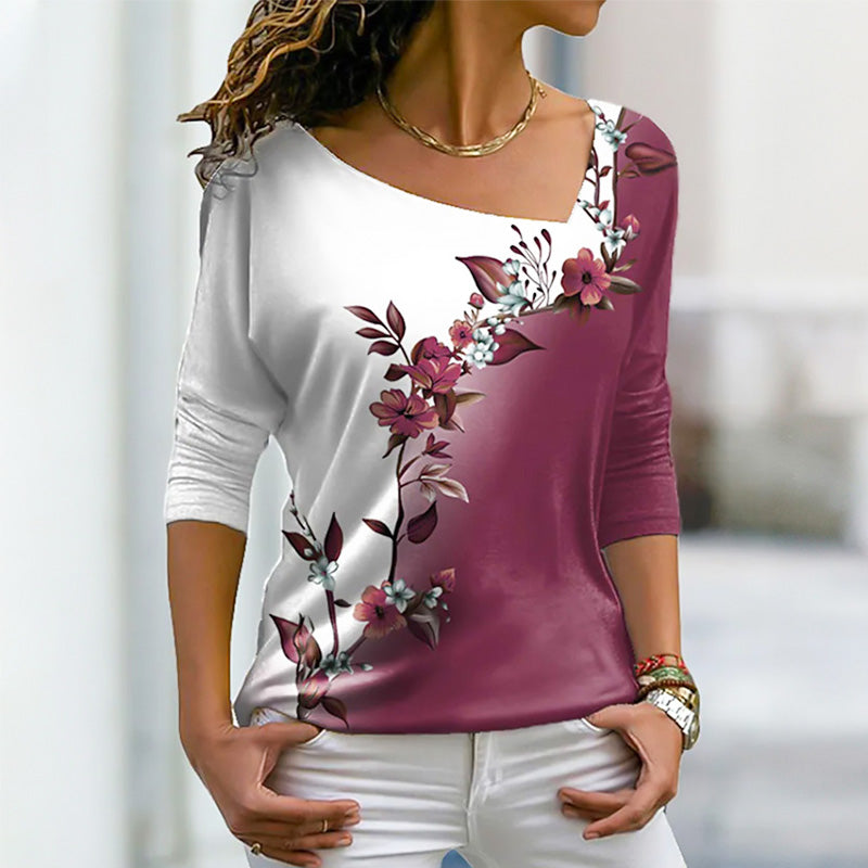 Дамска тениска с дълъг ръкав и V-образно деколте с флорални цветове