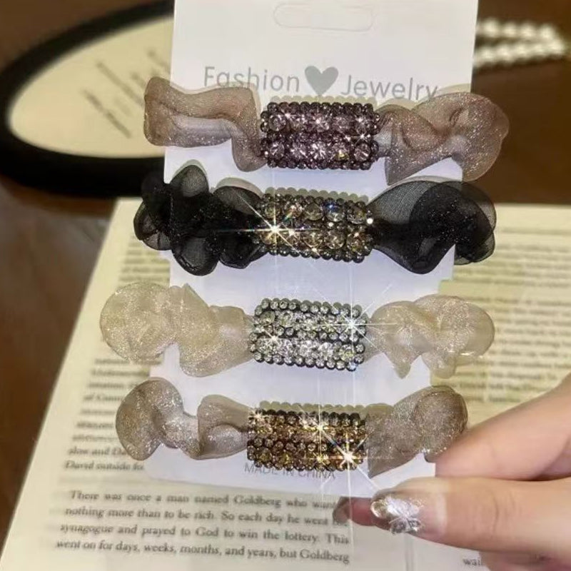 4 броя елегантни ластични ленти за коса с кристали