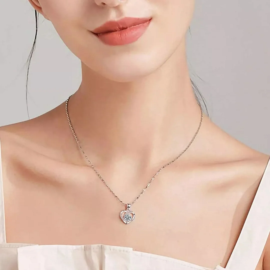 Когато става въпрос за изразяване на любов, този романтичен подарък за вашата съпруга е точно това, което трябва да изберете. Изненадайте своята сродна душа веднага! Този перфектен подарък за вашата сродна душа е украсен с деликатни циркониеви кристали, които ѝ придават нотка блясък, във формата на две сърца, които са заедно, точно като вас двамата! Прекрасно романтичен подарък. Декориран с деликатна сребърна верижка с размери приблизително 45 см, това е точно това, което вашата сродна душа е чакала! Fabunora предлага и атрактивна подаръчна кутия и картичка с послание, която можете да персонализирате напълно, за да ѝ кажете, че ще я обичате винаги и завинаги.