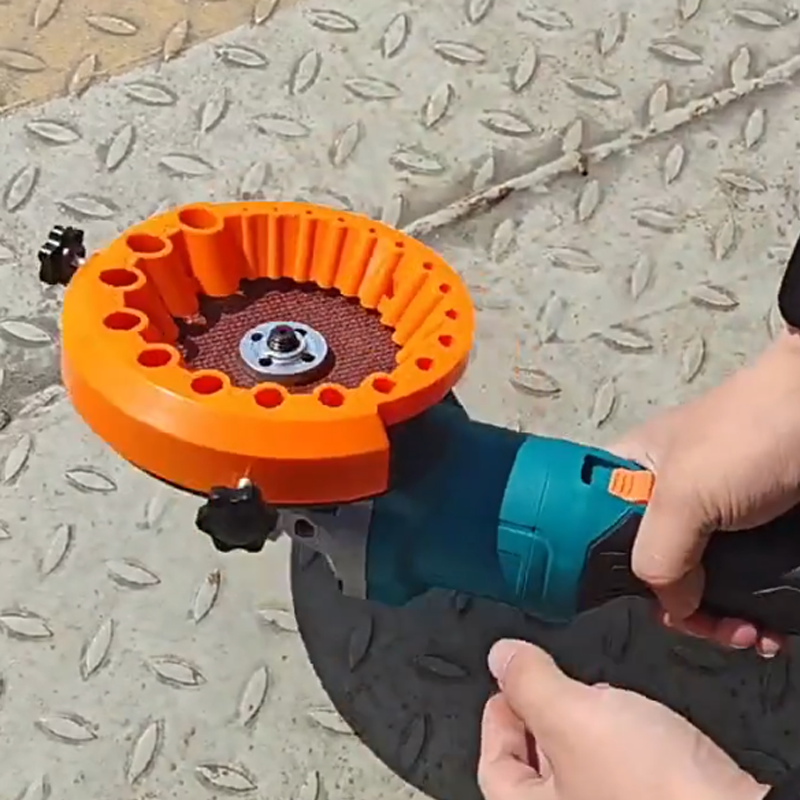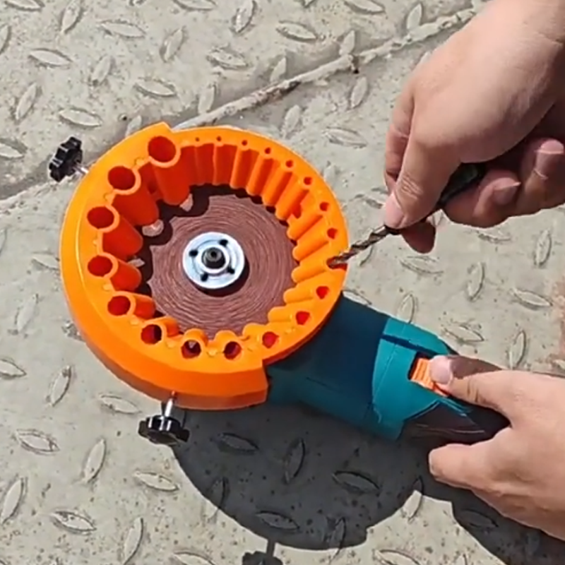 БЕЗПЛАТНА ИНТЕГРАЦИЯ С ЪГЛОШЛАЙФИ: Проектиран да работи с ъглошлайфи 125 мм, този уред подобрява функционалността на съществуващите ви инструменти, превръщайки ги в мощни заточващи устройства за свредла.